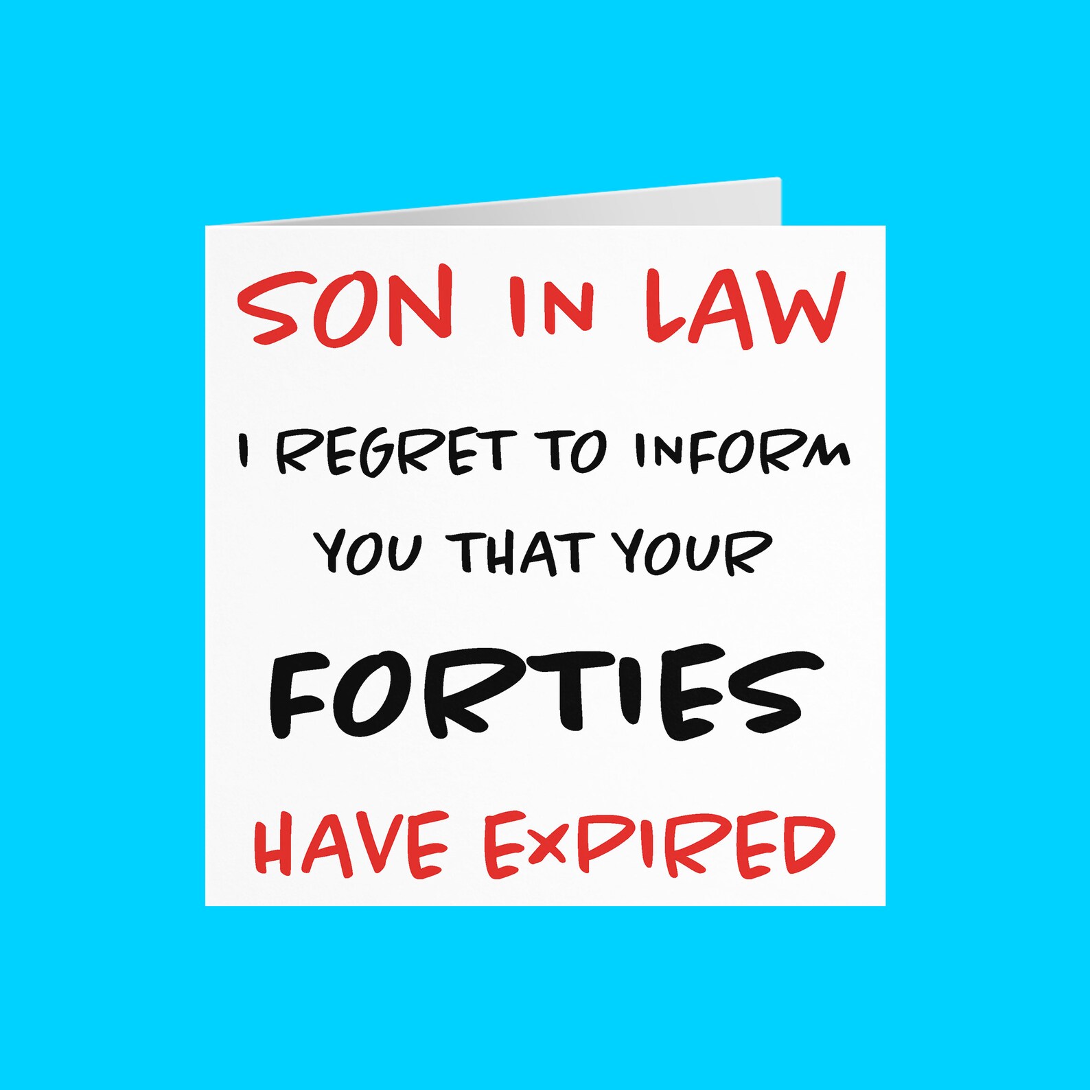 Funny Son In Law Birthday Card, Large A5 Special Son-In-Law Card. (515) $6.74. FREE shipping. 50th birthday card men women FANTASTIC & FIFTY! Mum Dad Husband Wife Brother Sister Uncle Aunt Son Daughter in law to from Black Cat Lover. (11.1k) $4.29.