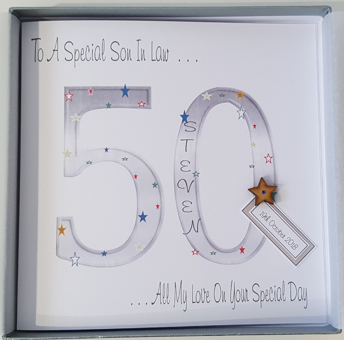Son In Law 50th Birthday Card - Special Son In Law - Warning Entering 50 Zone - Road Sign Collection Alison. 5 out of 5 stars "Lovely card and great quality,quick delivery too" Personalised Son in law Birthday Card, Card for Him any age and name 18th 21st 30th 40th 50th 60th Medium of Large Hannah. 5 out of 5 stars.