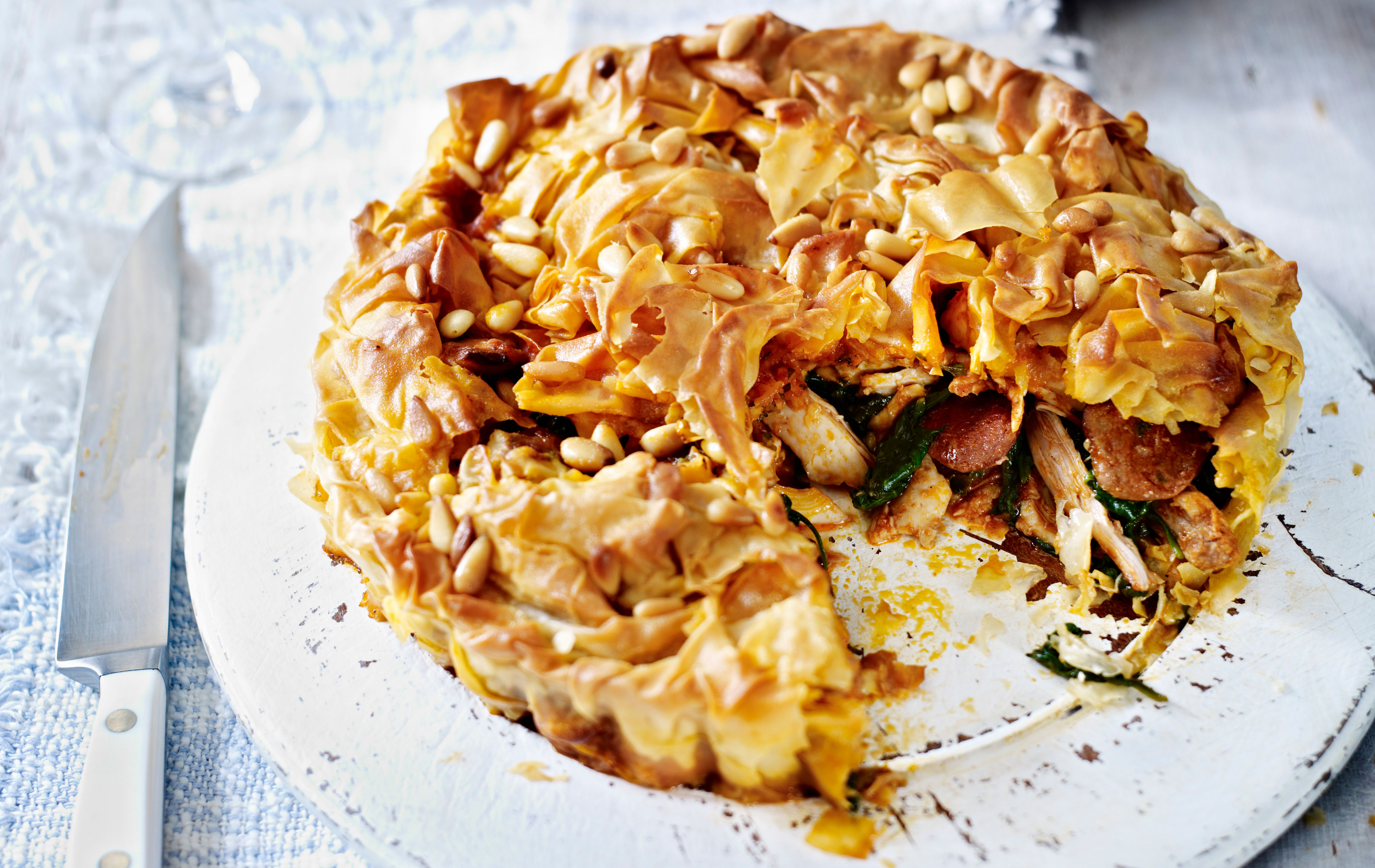 Chicken and chorizo filo pie Ontrack