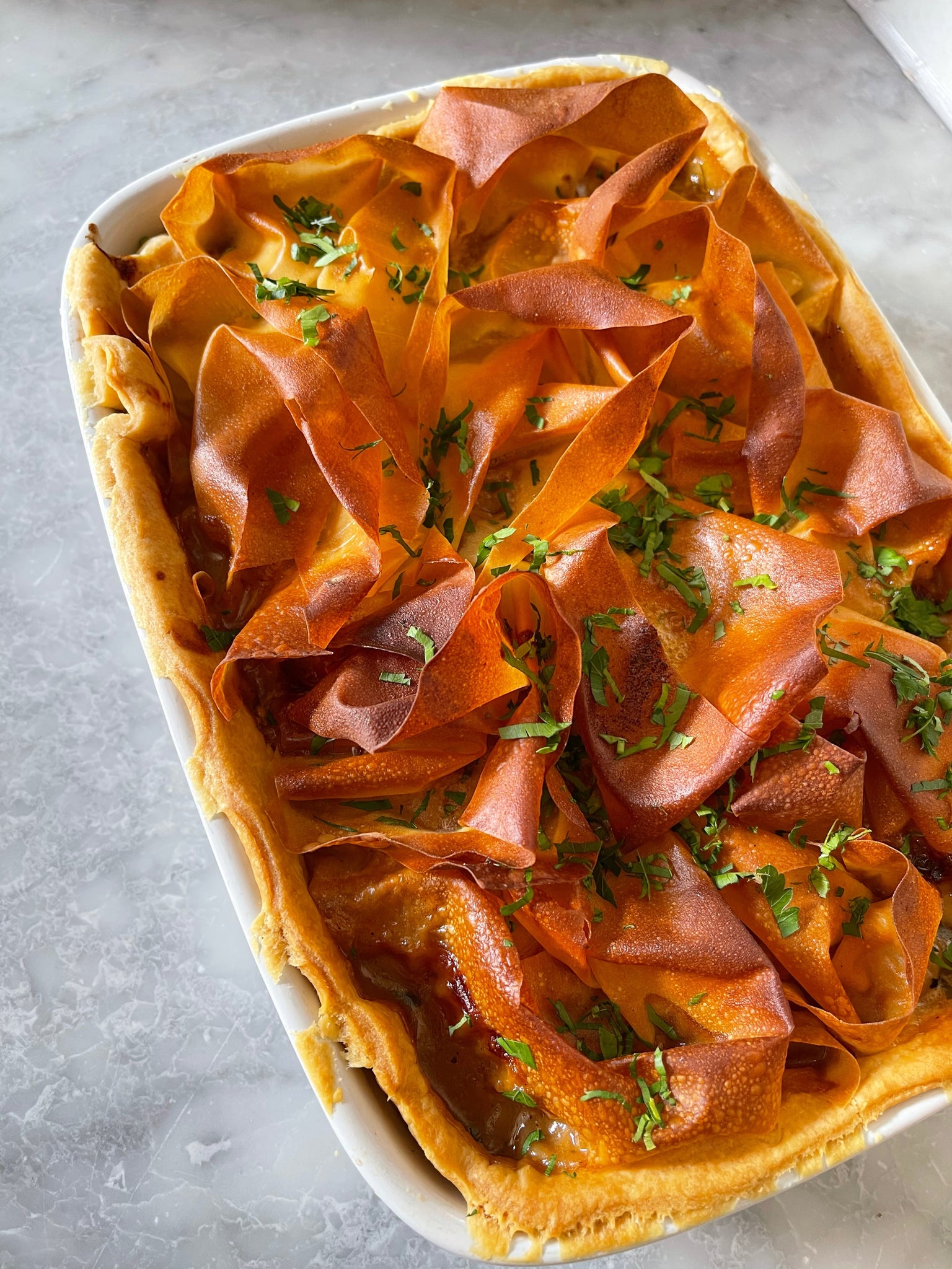 Chicken & Ham Hock Filo Pie Curly's Cooking