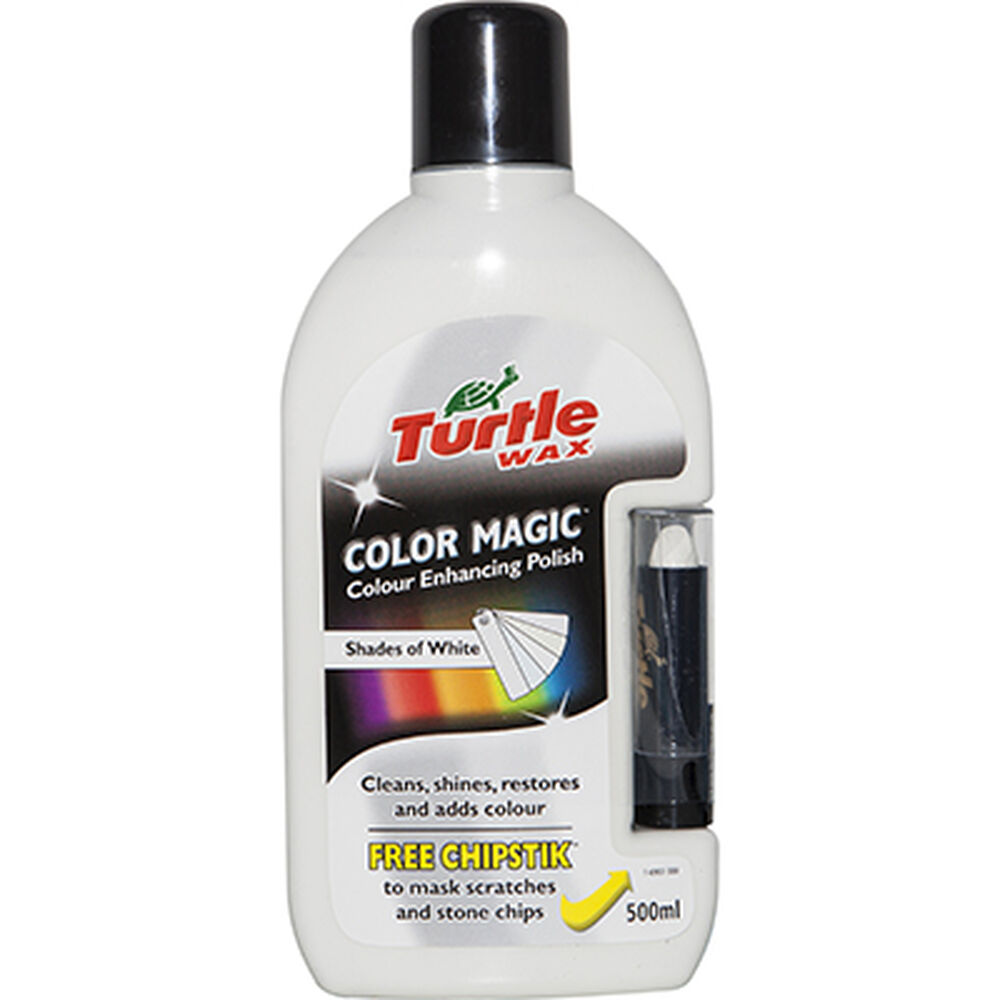 Available at. Description. Renew your car's pristine paint job with Color Magic White, specially formulated to clean, polish and wax white car exteriors until they shine to perfection! This powerful detailing solution contains special pigments that brighten white car surfaces and effortlessly mask discoloration from scratches and swirls.