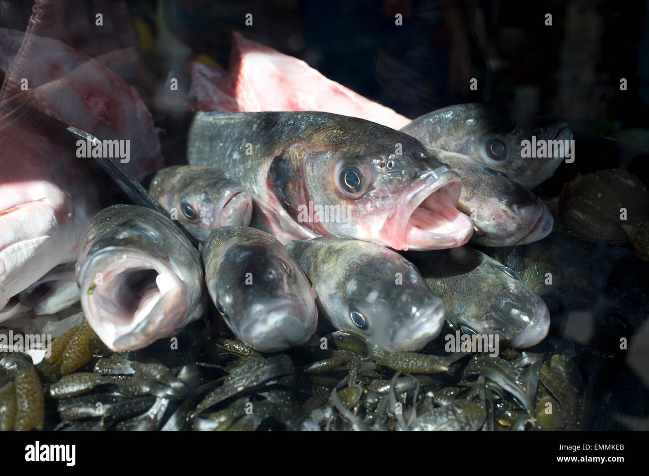 Hackney, London. Broadway market. Fish in the window of Fin and Flounder Stock Photo Alamy