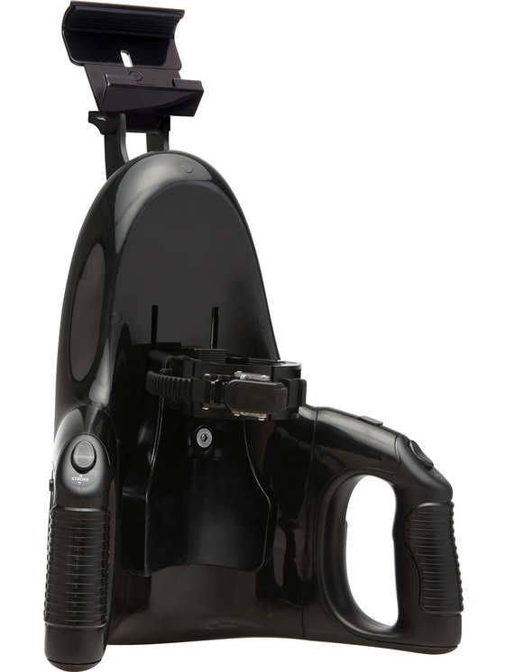 The Fleshlight Launch, Powered by Kiiroo, is an enormous male masturbator that looks like a cross between a sci-fi arm cannon and the cleaning dock for a Braun shaver. Made with black ABS plastic.