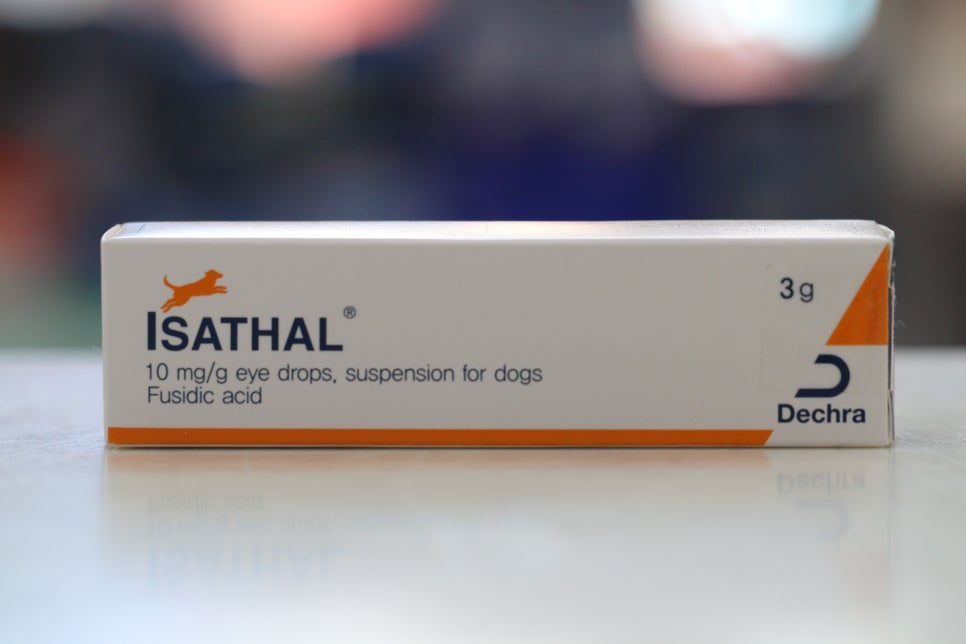 Isathal Eye Drops for Dogs, Cats & Rabbits. A sterile, white to off-white, viscous formulation. 1g suspension contains 10mg of Fusidic acid. Dog: For the topical treatment of conjunctivitis associated with Staphylococcus aureus and in particular the biotype Staphylococcus intermedius. Cat: For the topical treatment of conjunctivitis associated.