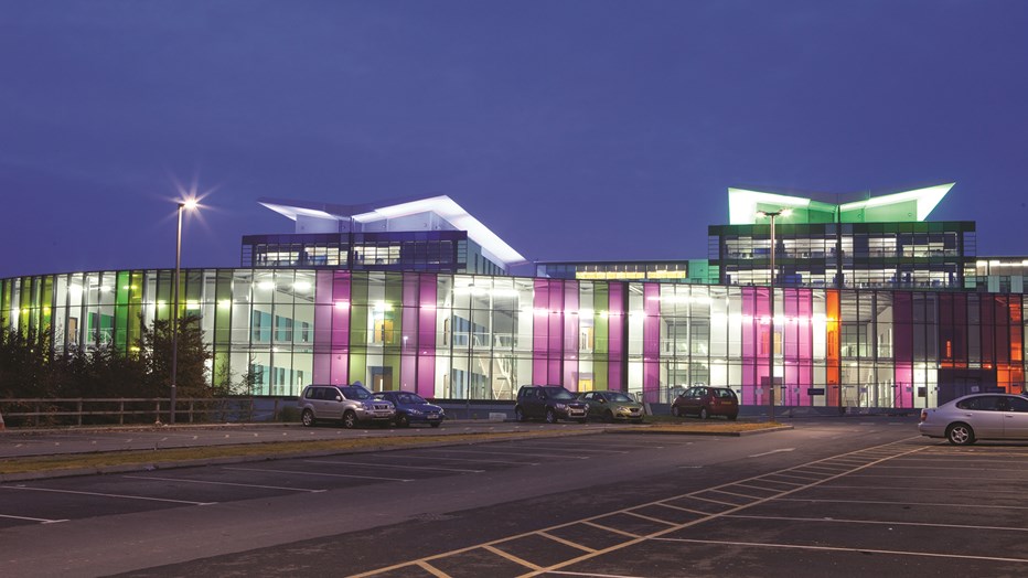Kings Mill Hospital in Nottinghamshire. Colour facade by Ptolemy Mann Kings mills