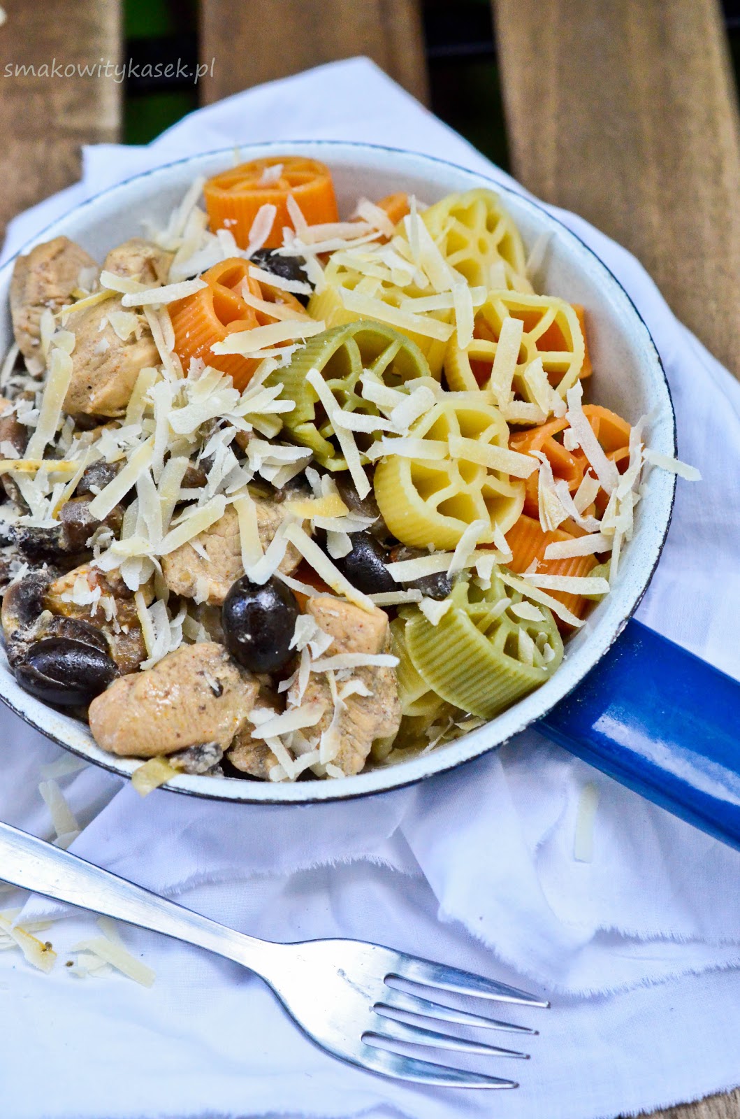 Makaron z kurczakiem, pieczarkami i oliwkami Paulina Hofman