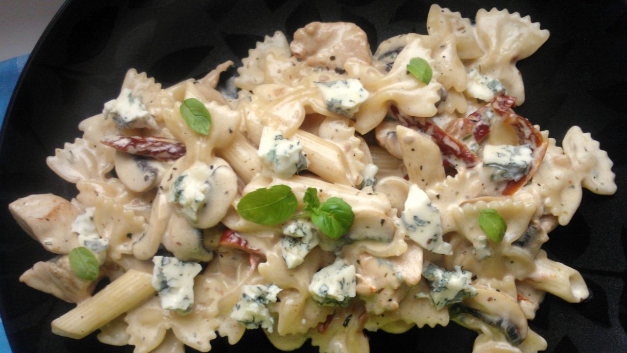 Makaron z kurczakiem, pieczarkami i suszonymi pomidorami Gotuj z Prezesem