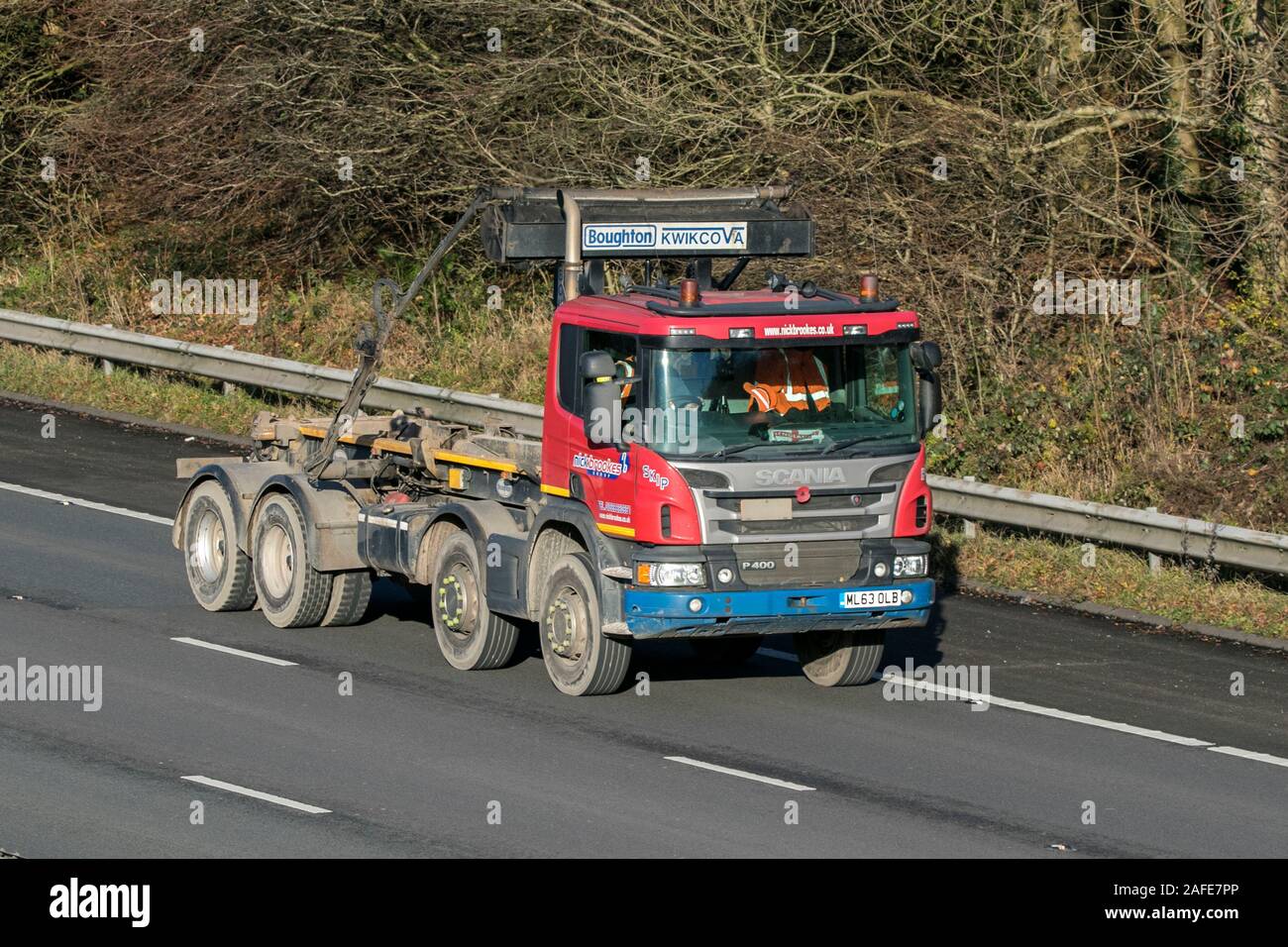 Nick Brookes skip hire scania p400 driving on the M61 motorway near Manchester, UK Stock Photo