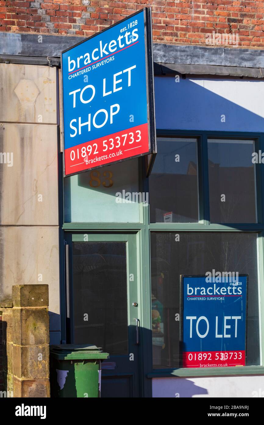 Empty shop To Let sign on Mount Pleasant Road, Tunbridge Wells, Kent, UK Stock Photo Alamy