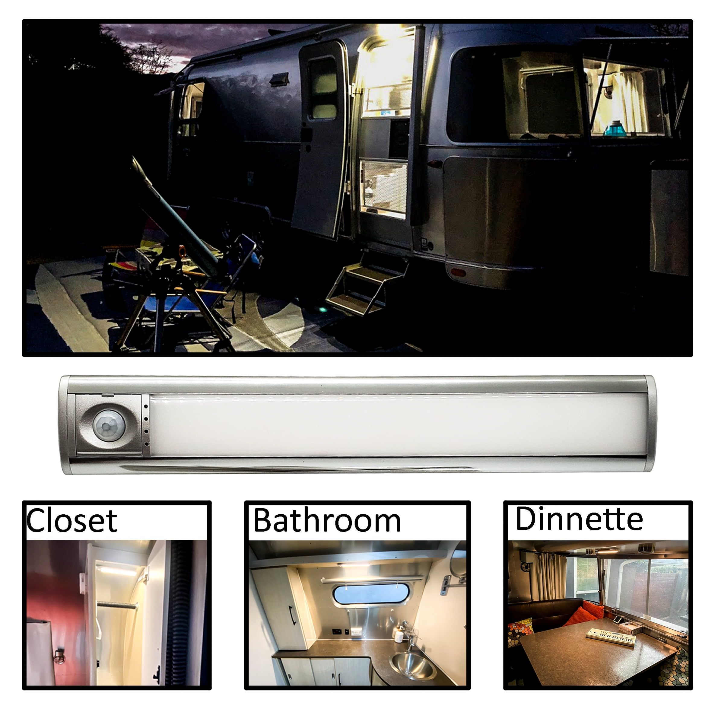 Rechargeable light bars gives you the right amount of light without complicated installation or wiring. Adjustable motion sensor allows you to customize the activation so they will come on automatically as you want. Select from 3-light modes, cool white, soft white and blended white. Charging base can charge up to 4 lights at a time.
